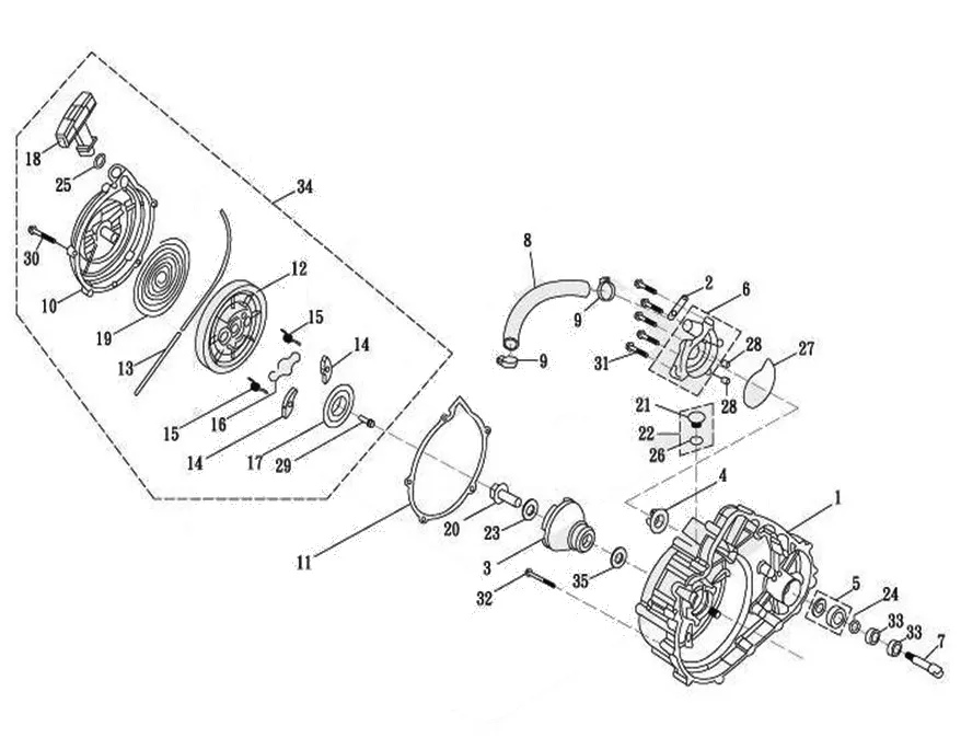 Крышка картера правого, ручной стартер, помпа